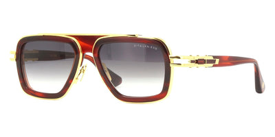 This square Dita sunglass comes in a blue swirl and yellow gold frame with dark brown to clear gradient lenses.