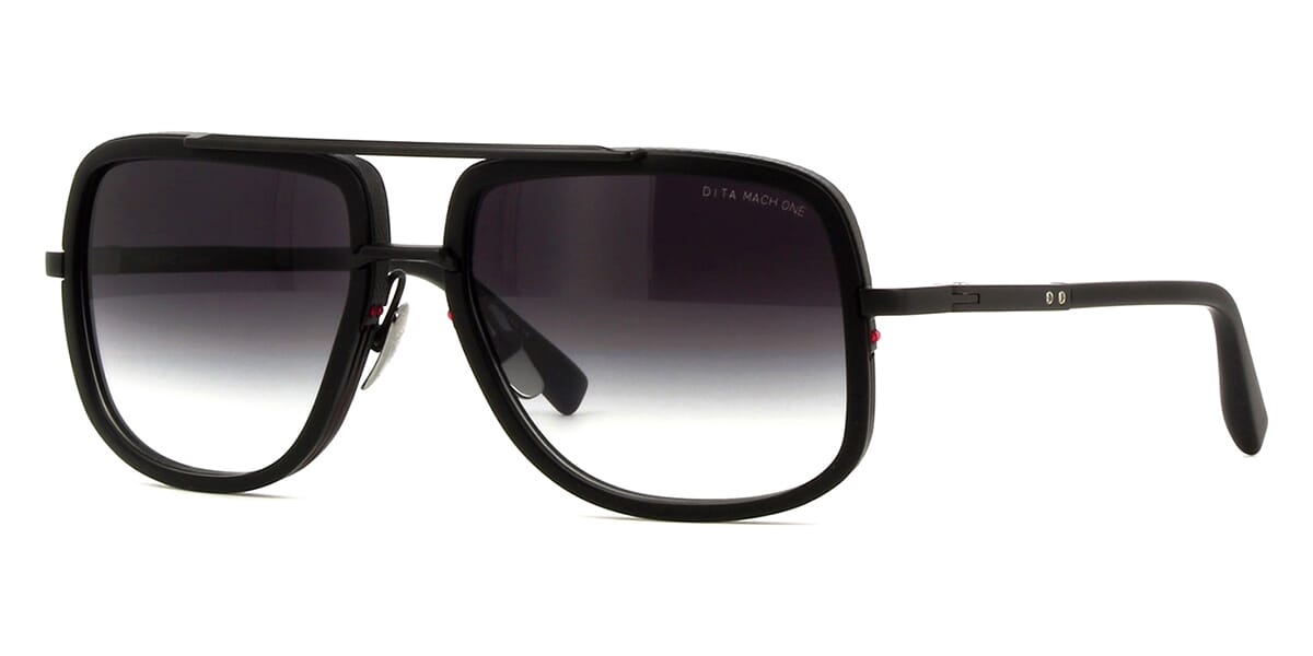 This square Dita sunglass comes in a matte black frame with grey gradient with light mirror lenses.