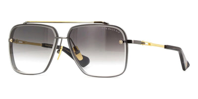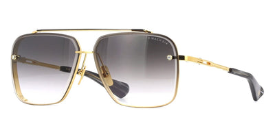 This square Dita sunglass comes in a yellow gold and black rhodium frame with dark grey to clear gradient lenses.