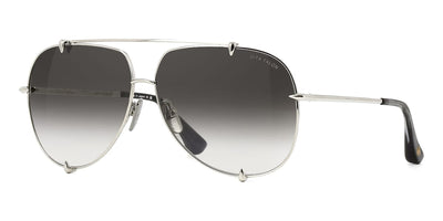 This aviator Dita sunglass comes in a silver frame with dark grey to clear with soft blue mirror lenses.