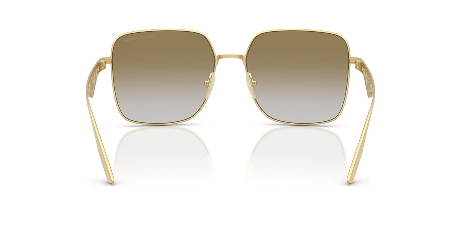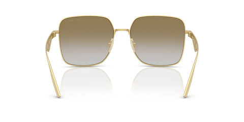 This square Dolce&Gabbana sunglass comes in a matte gold frame with light brown with gold gradient mirror lenses.