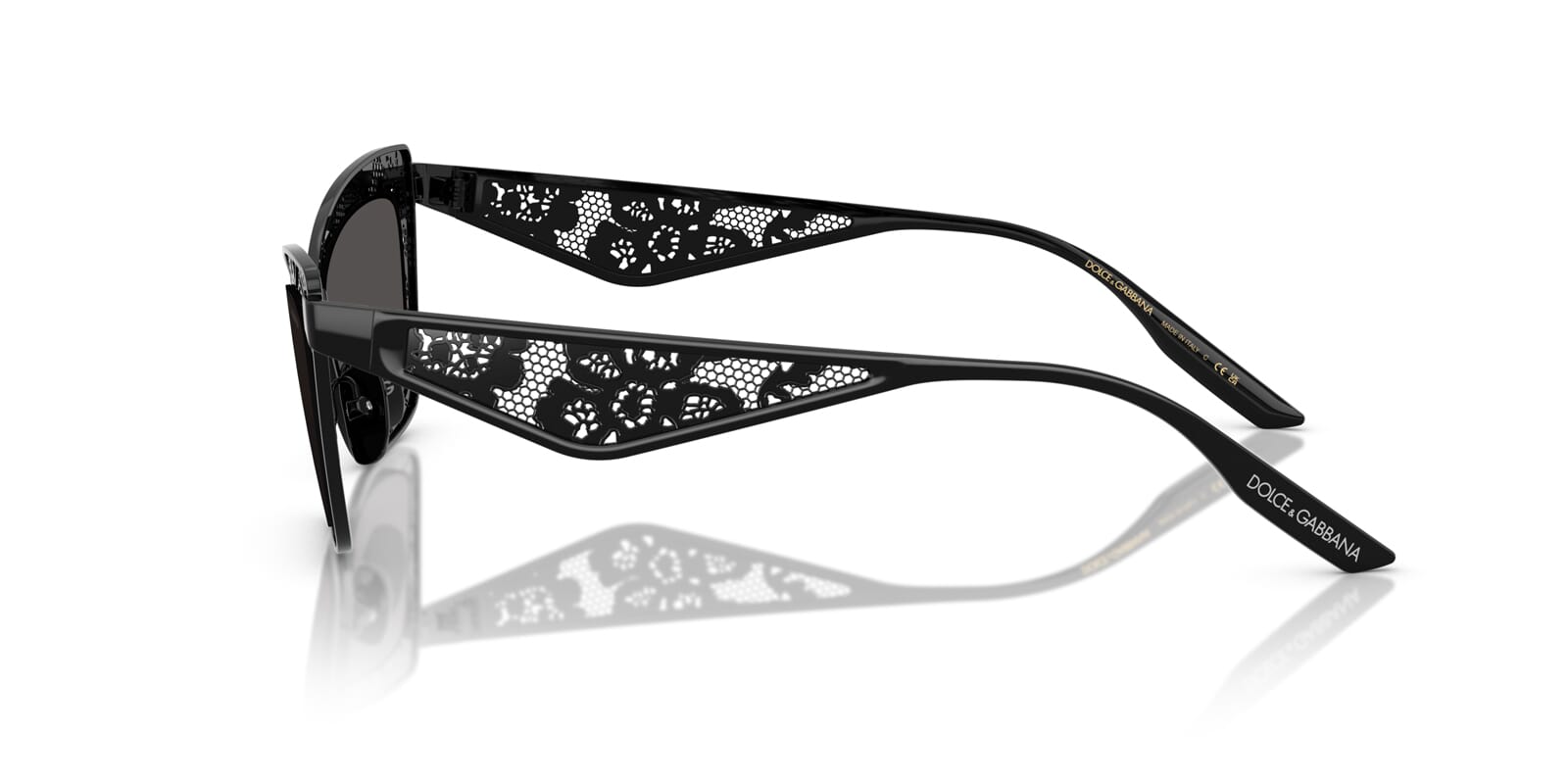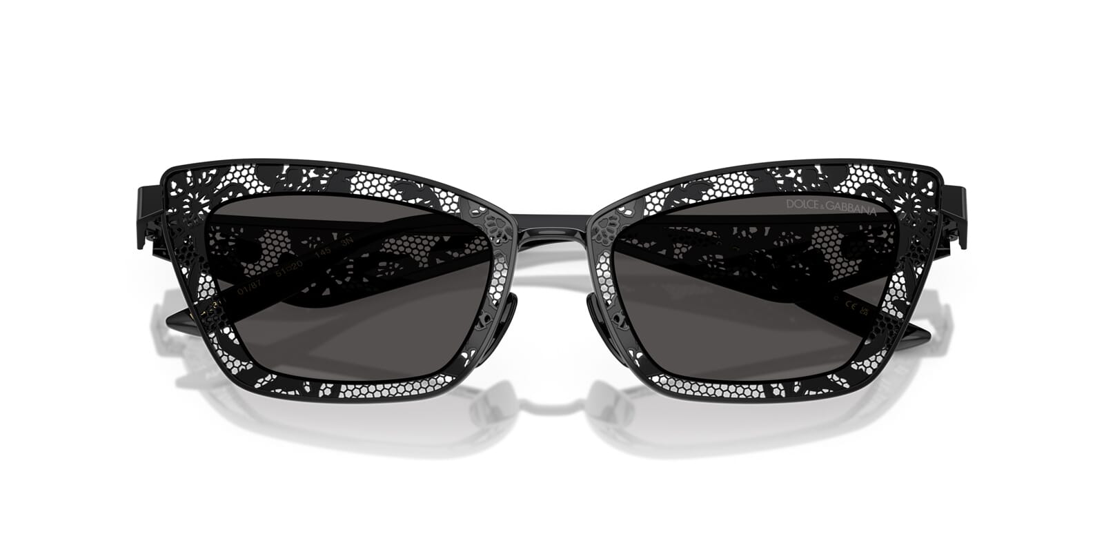 This cat eye Dolce&Gabbana sunglass comes in a black frame with dark grey lenses.