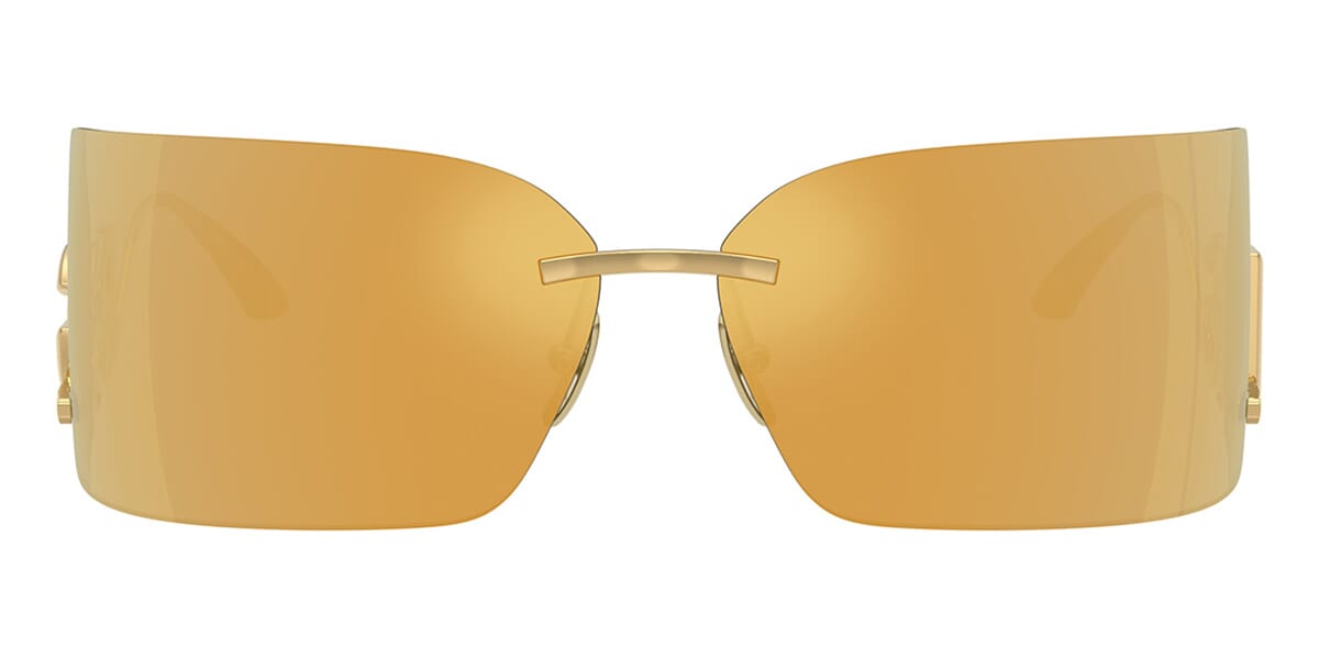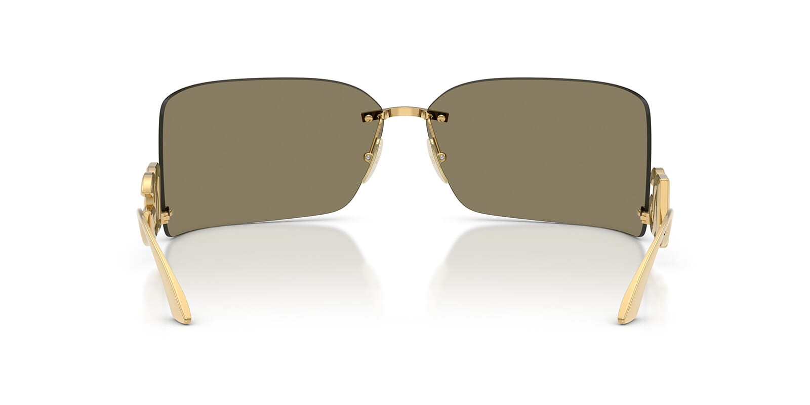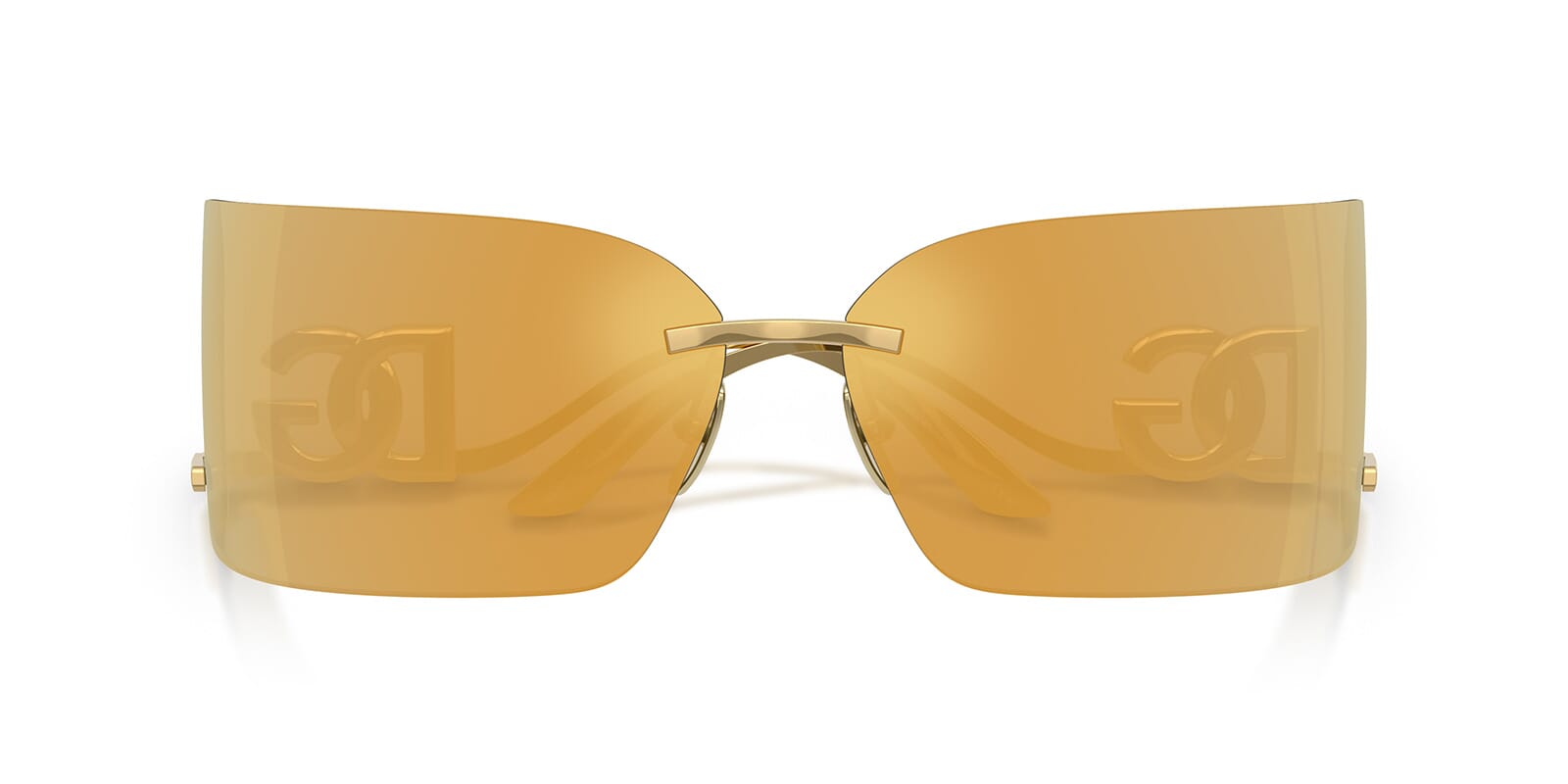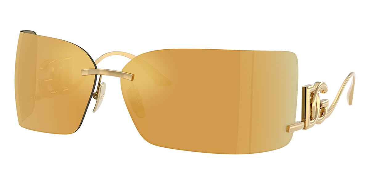This rectangular Dolce&Gabbana sunglass comes in a gold frame with brown with gold mirror lenses.