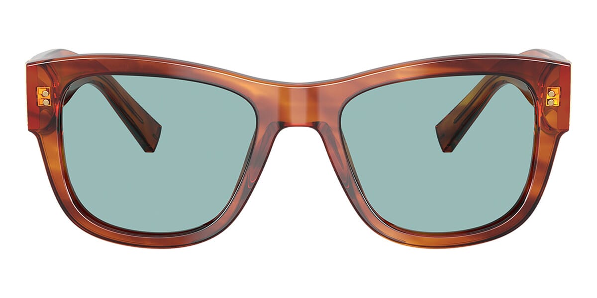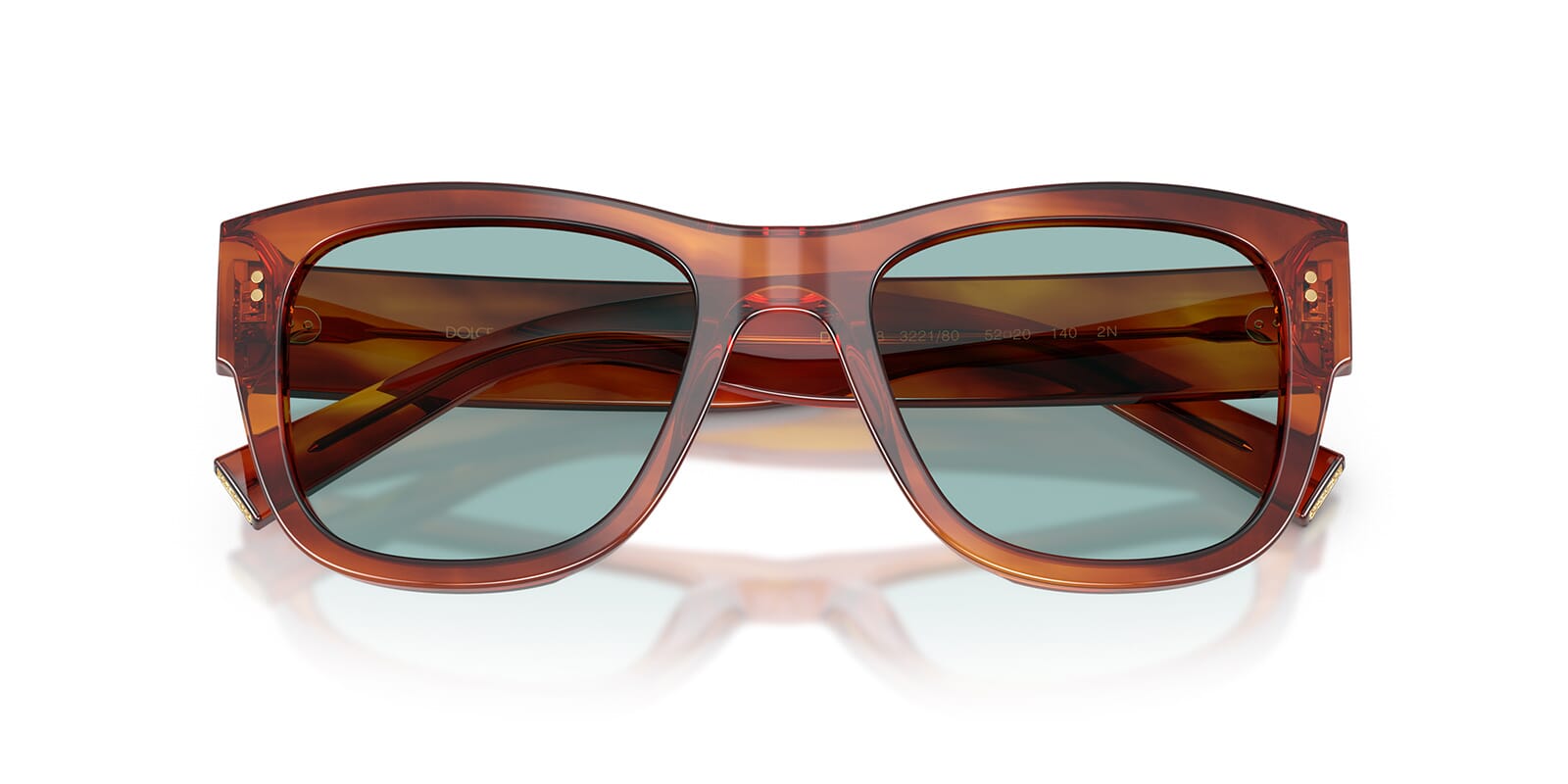 This square Dolce&Gabbana sunglass comes in a havana ginger frame with blue lenses.