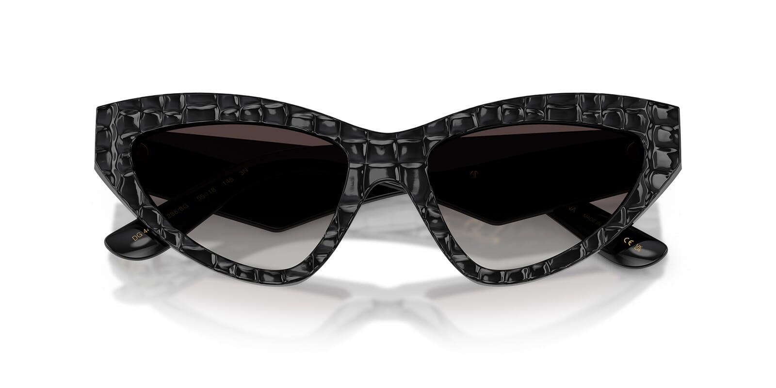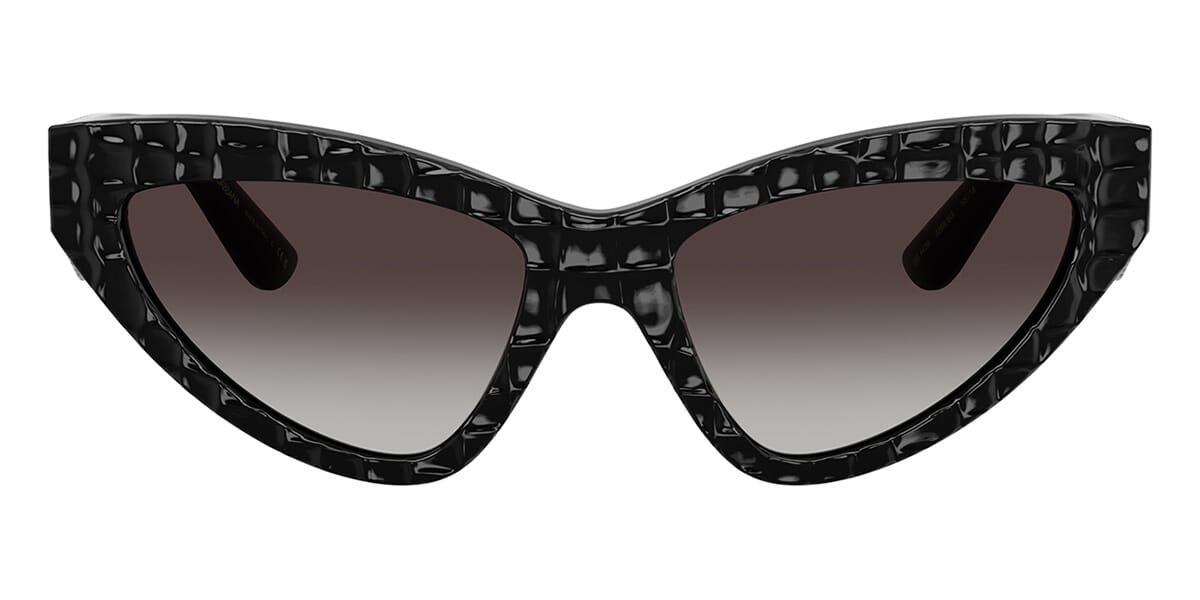 This cat eye Dolce&Gabbana sunglass comes in a black texture cocco frame with grey gradient lenses.