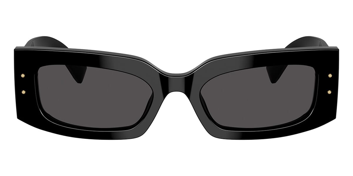 This rectangular Dolce&Gabbana sunglass comes in a black frame with dark grey lenses.