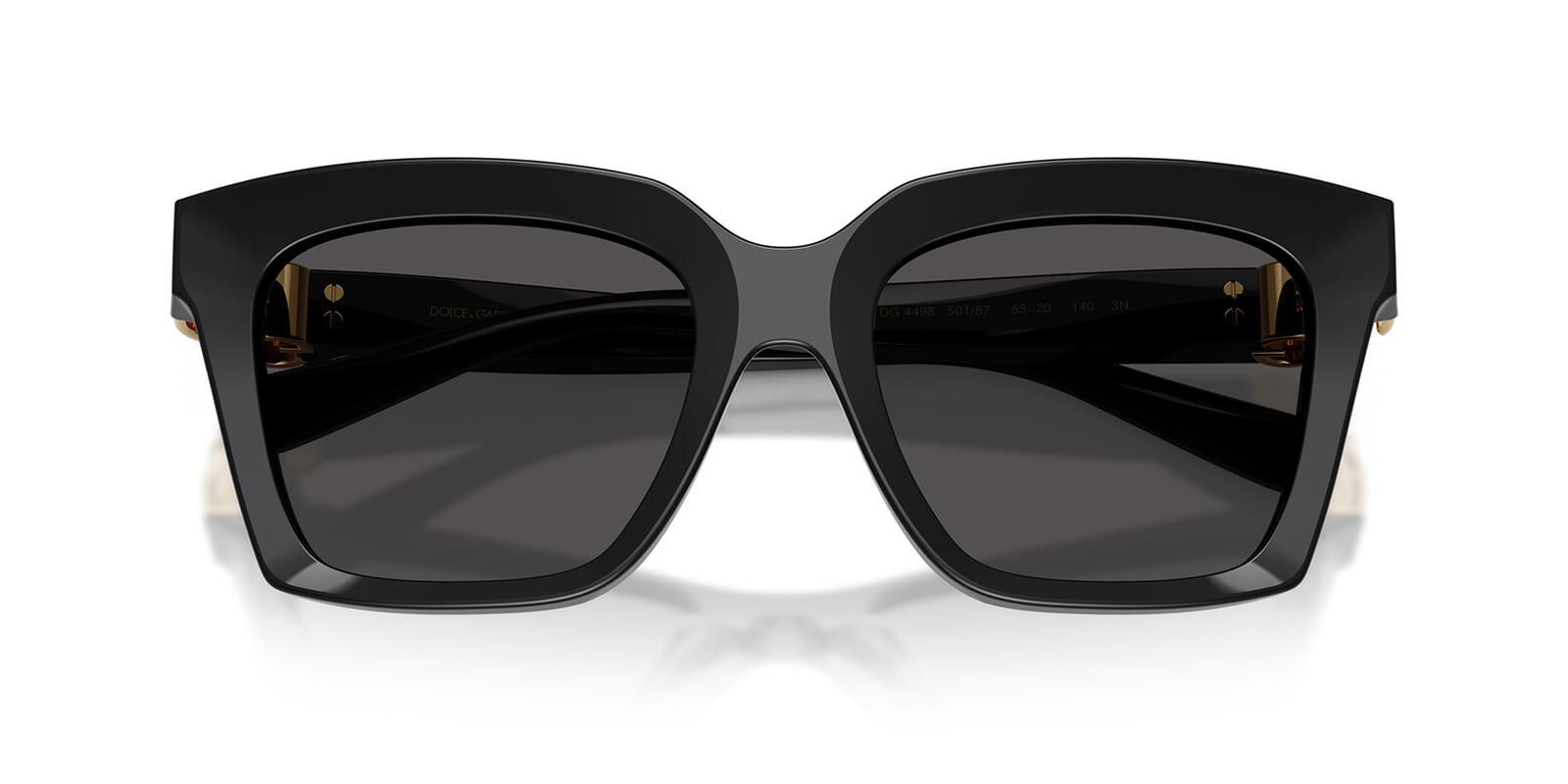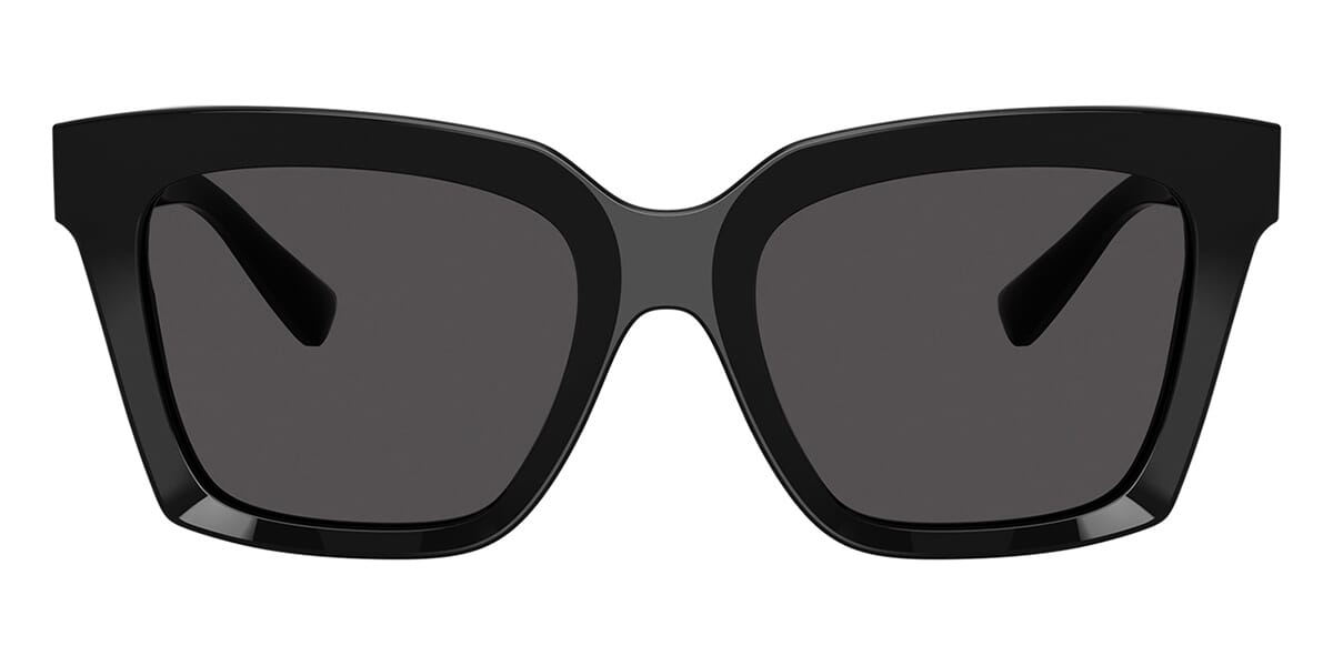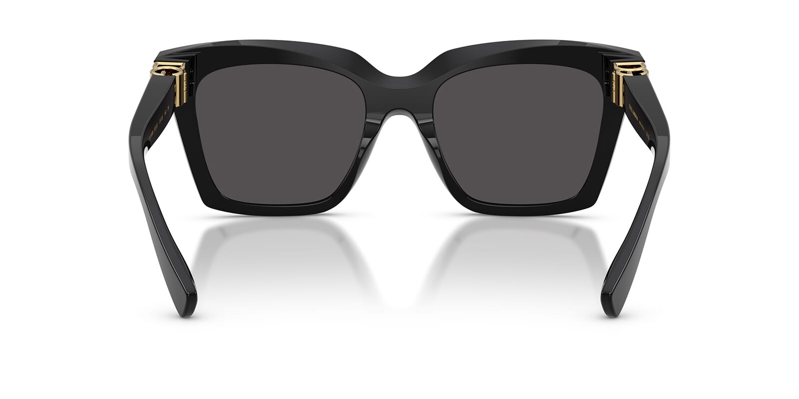This square Dolce&Gabbana sunglass comes in a black frame with dark grey lenses.