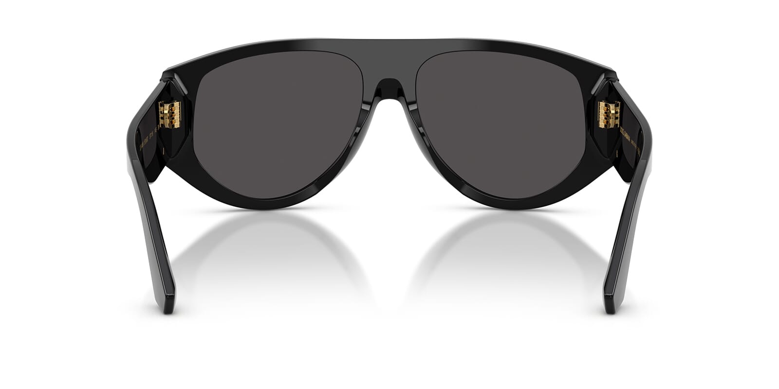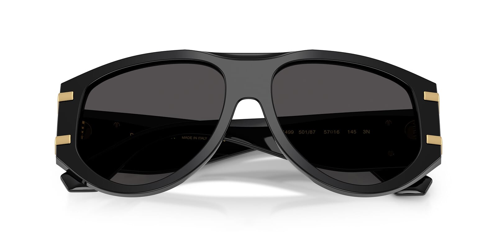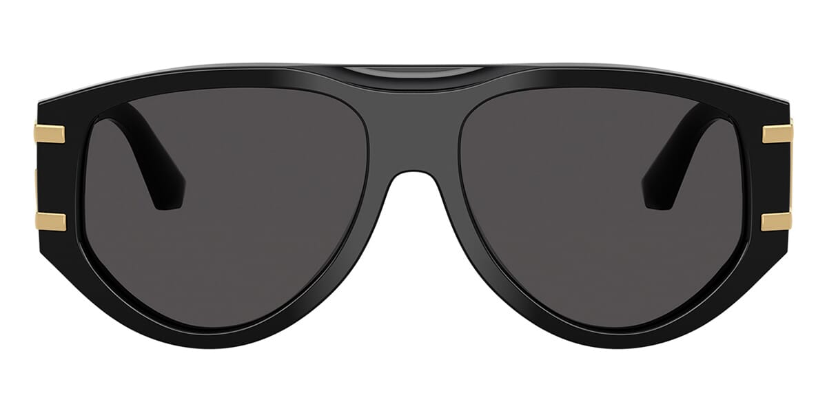 This aviator Dolce&Gabbana sunglass comes in a black frame with dark grey lenses.