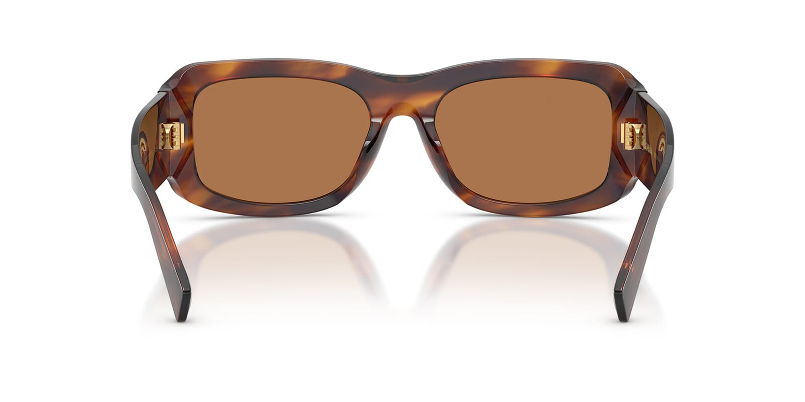 This rectangular Dolce&Gabbana sunglass comes in a striped brown frame with bronze lenses.