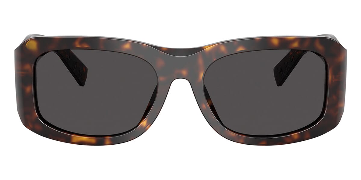 This rectangular Dolce&Gabbana sunglass comes in a havana frame with dark grey lenses.