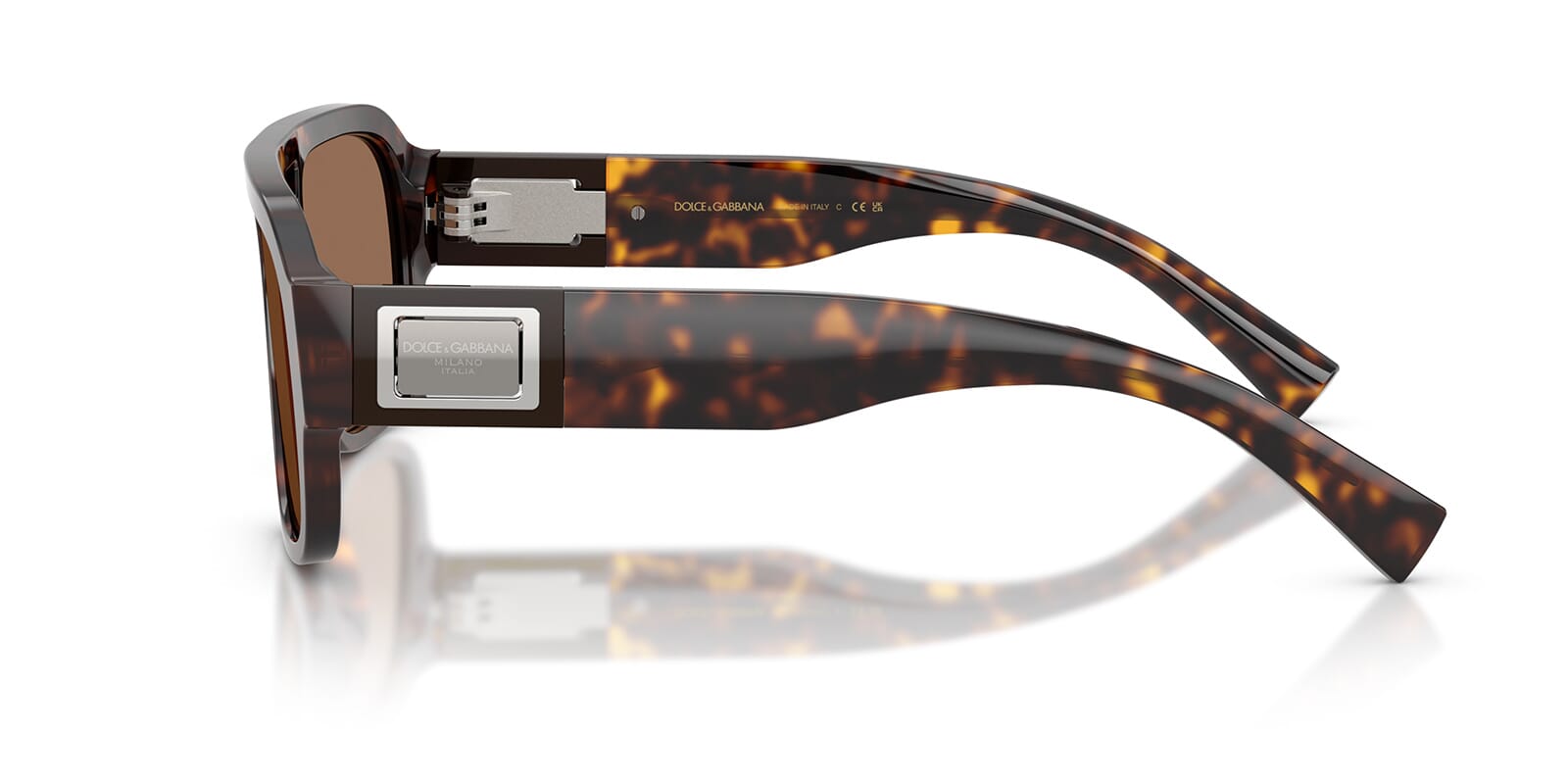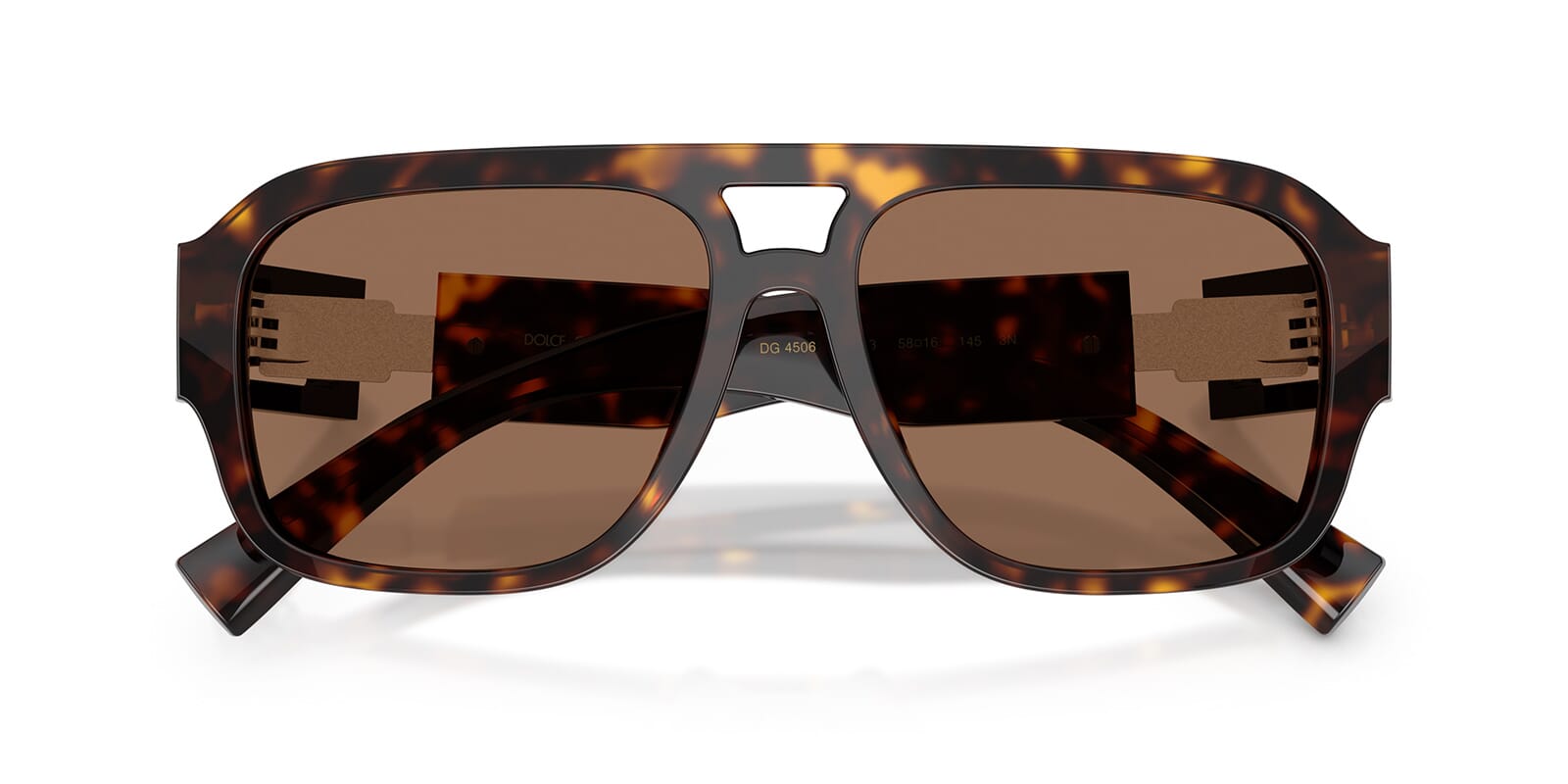 This aviator Dolce&Gabbana sunglass comes in a havana frame with dark brown lenses.