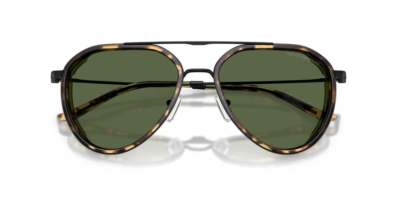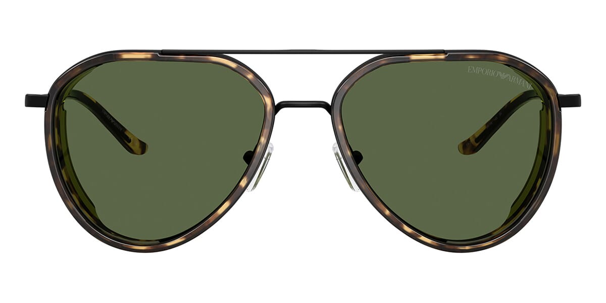This aviator Emporio Armani sunglass comes in a matte black frame with dark green lenses.