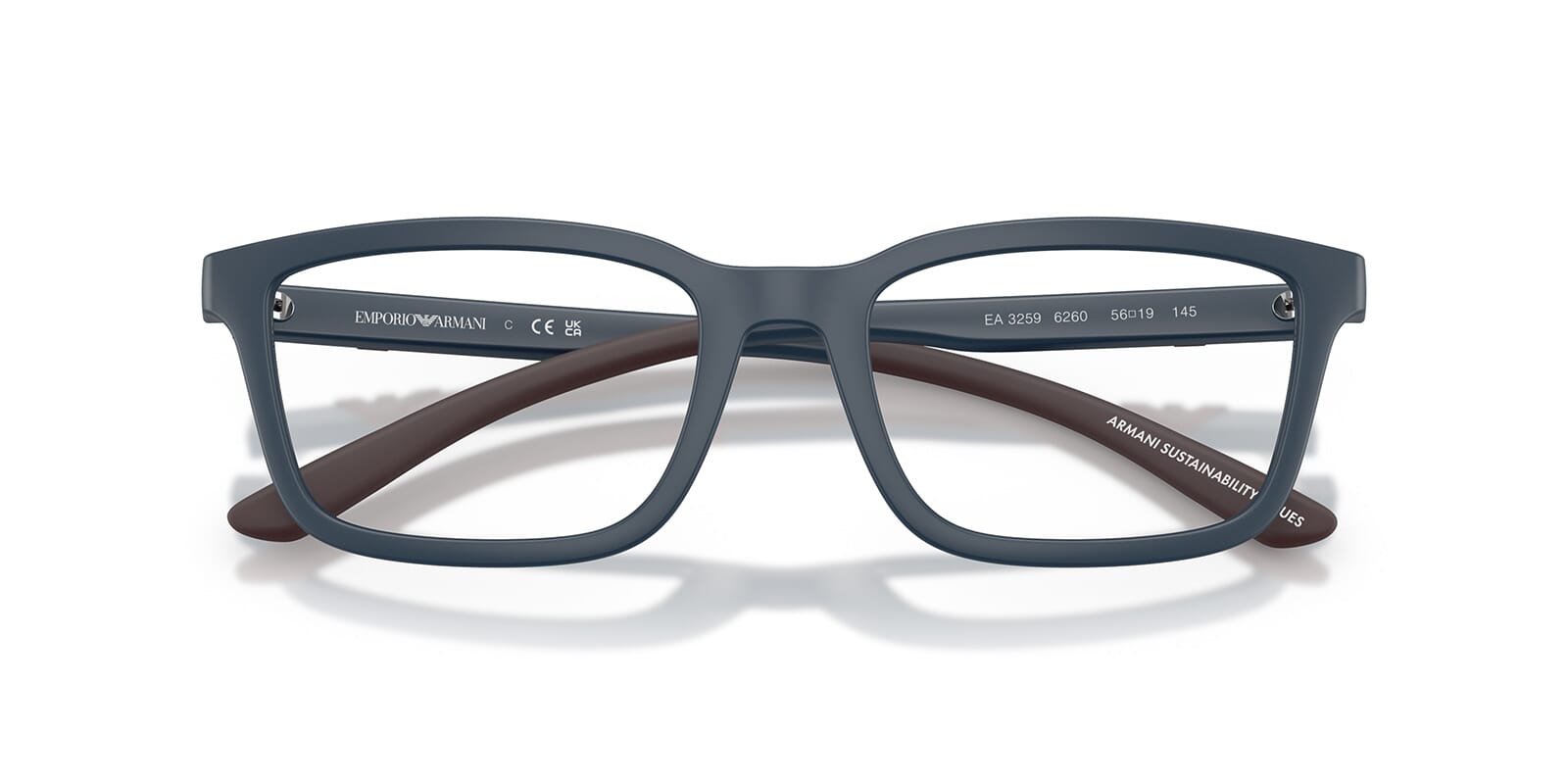 This rectangular Emporio Armani optical comes in a matte blue frame.