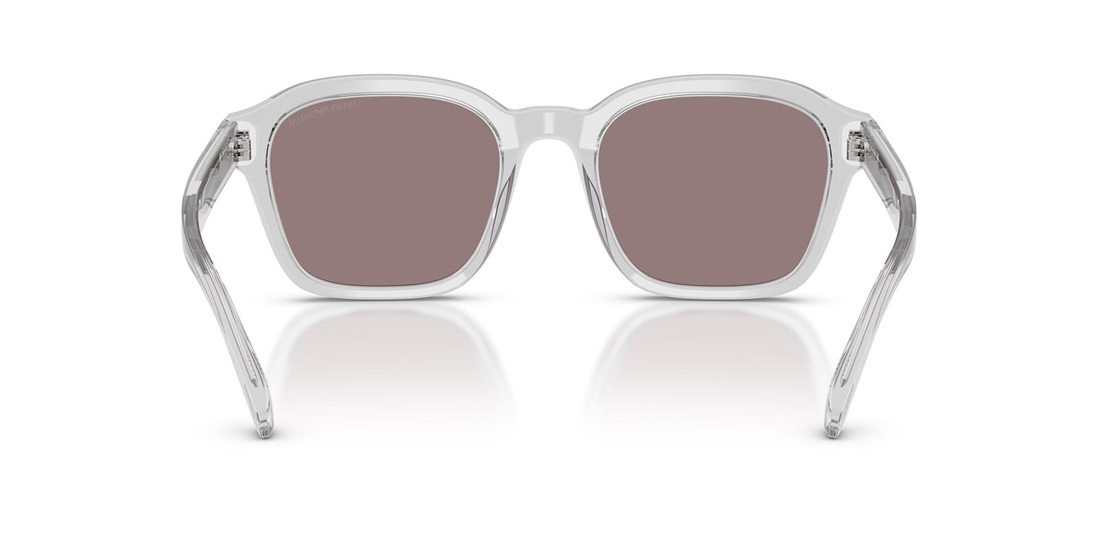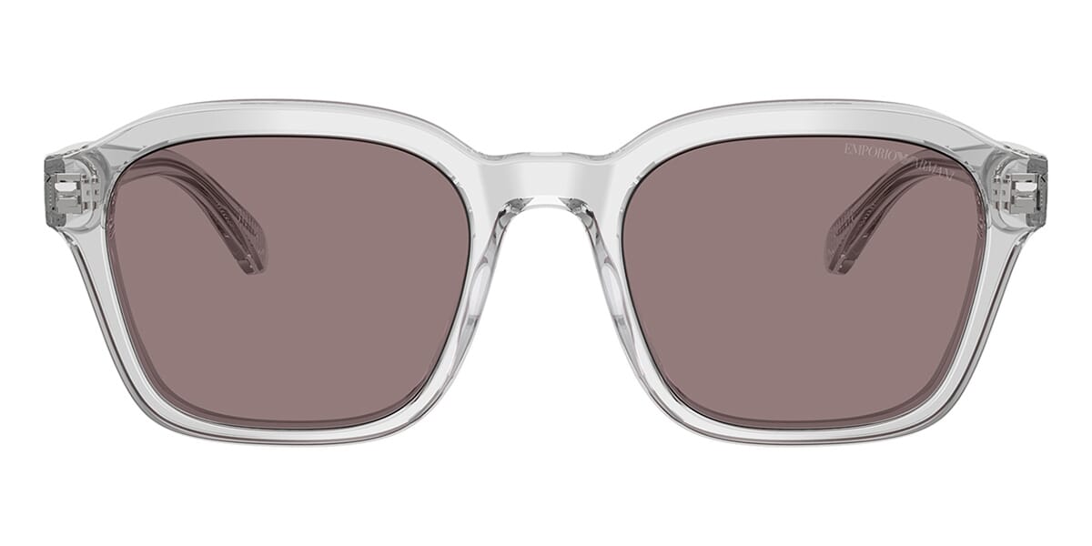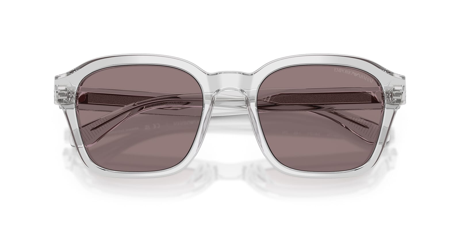 This square Emporio Armani sunglass comes in a shiny crystal frame with purple brown lenses.