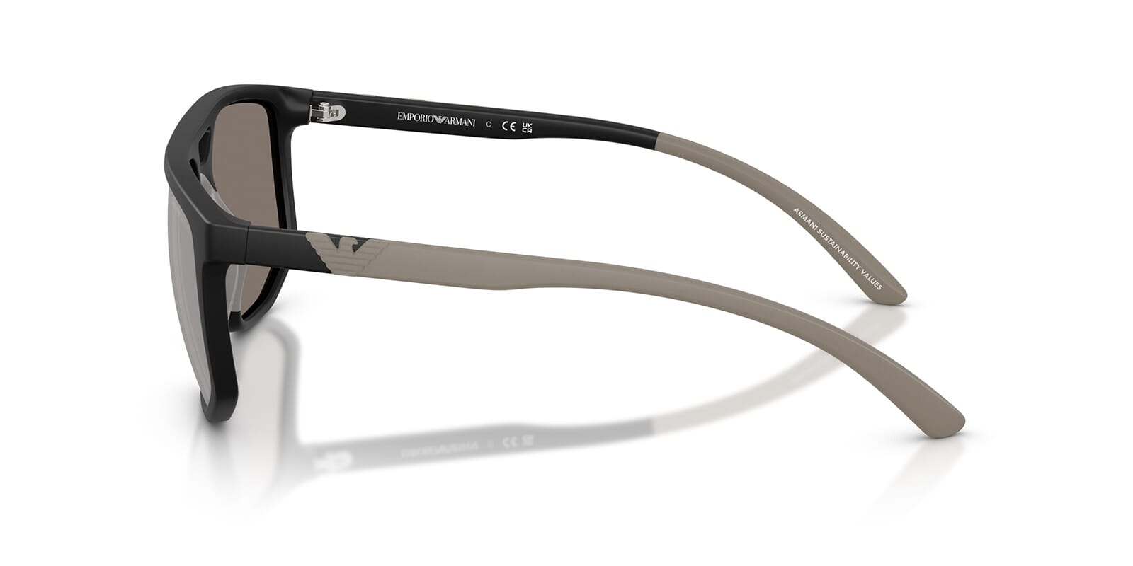 This aviator Emporio Armani sunglass comes in a matte black frame with light grey with silver mirror lenses.