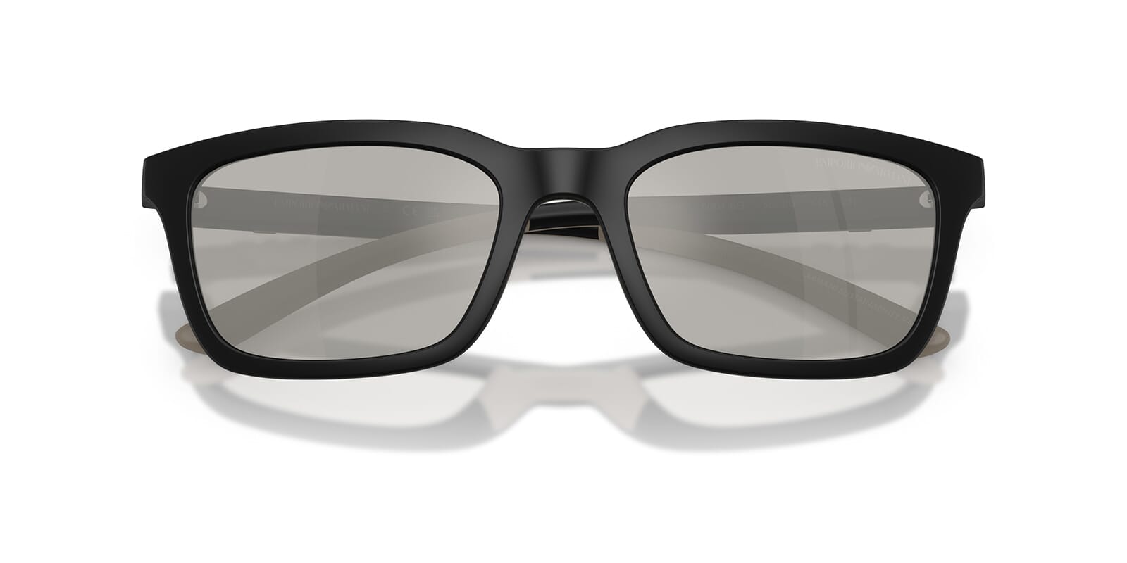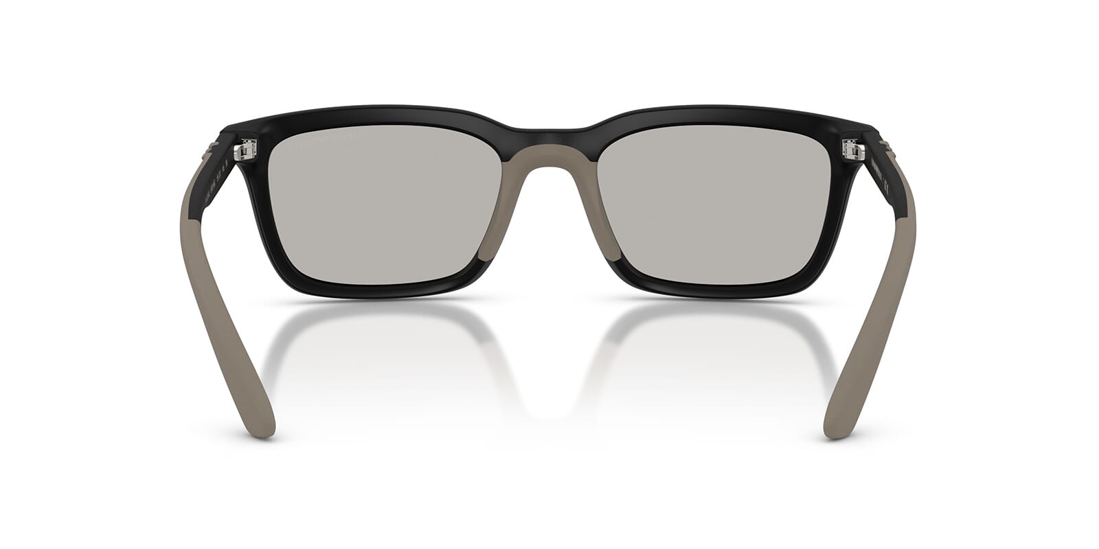 This rectangular Emporio Armani sunglass comes in a matte black frame with light grey with silver flash mirror lenses.
