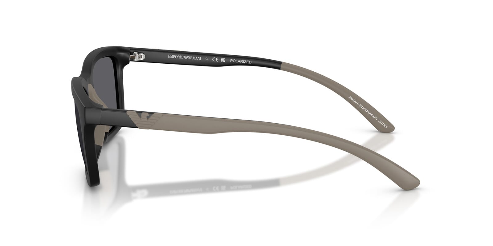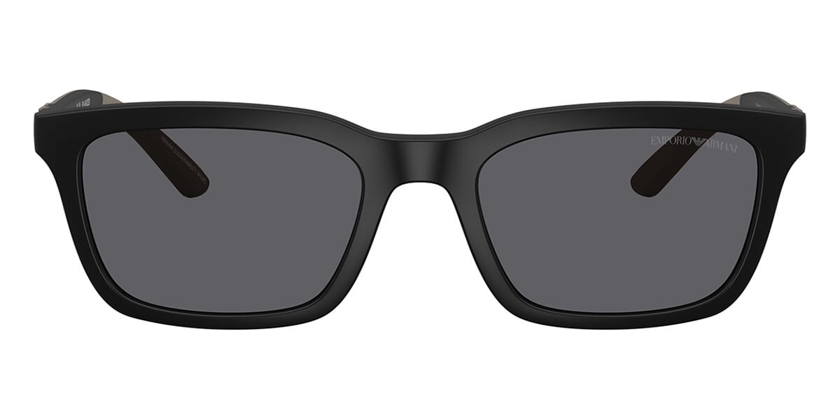 This rectangular Emporio Armani sunglass comes in a matte black frame with grey polarised lenses.