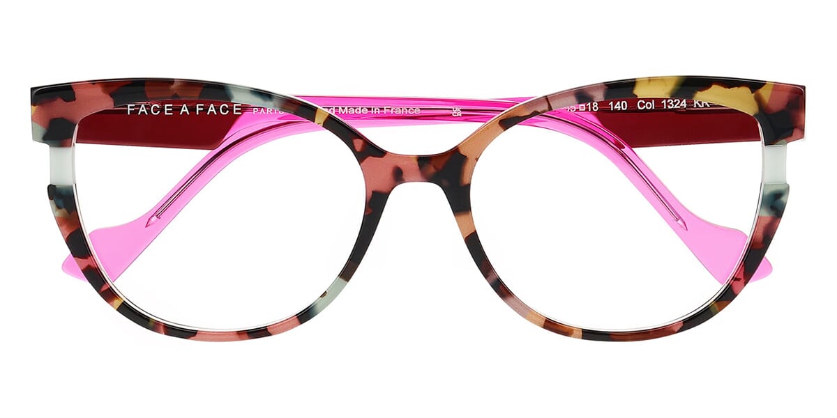 This cat eye Face A Face optical comes in a canouflace pop frame.