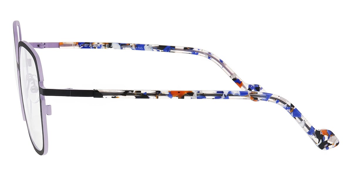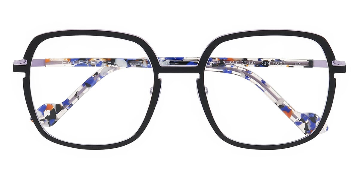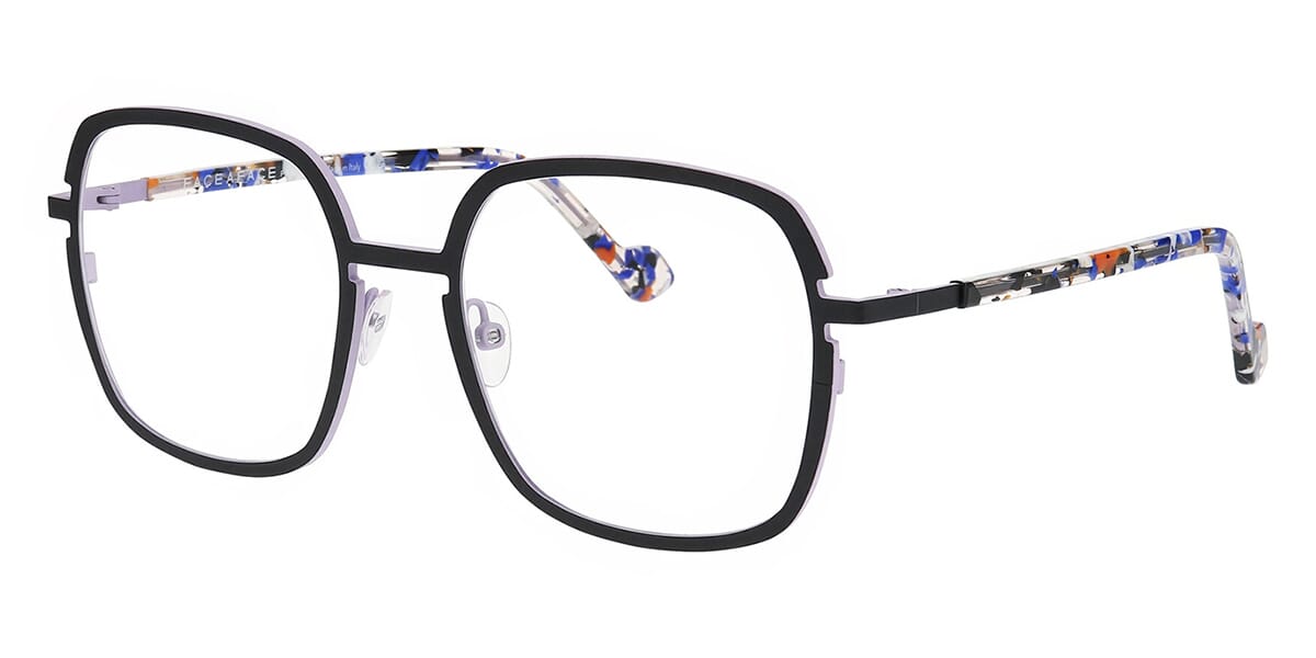 This square Face A Face optical comes in a ultra matt black with purple and havana frame.