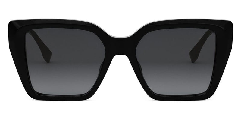 This square Fendi sunglass comes in a shiny black frame with grey gradient lenses.