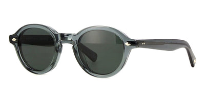This round Garrett Leight sunglass comes in a juniper frame with semi flat pure g15 lenses.