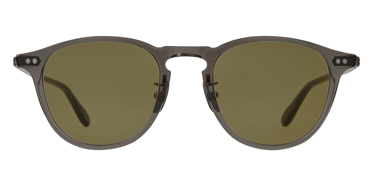 This square Garrett Leight sunglass comes in a eclipse dark crystal grey frame with mojito green lenses.