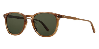 This wayfarer Garrett Leight sunglass comes in a butterscotch frame with pure green lenses.