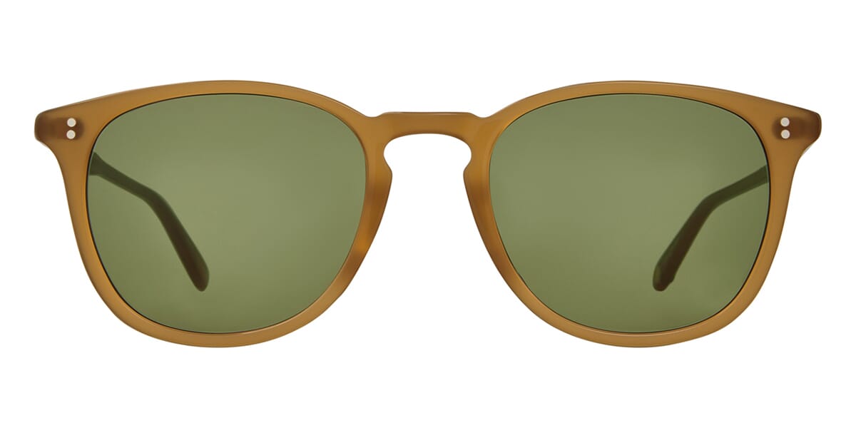 This square Garrett Leight sunglass comes in a summer sun brown frame with pure green lenses.