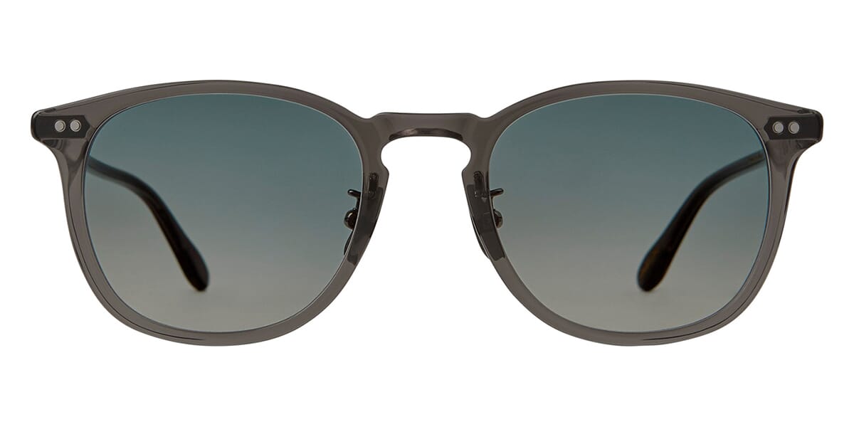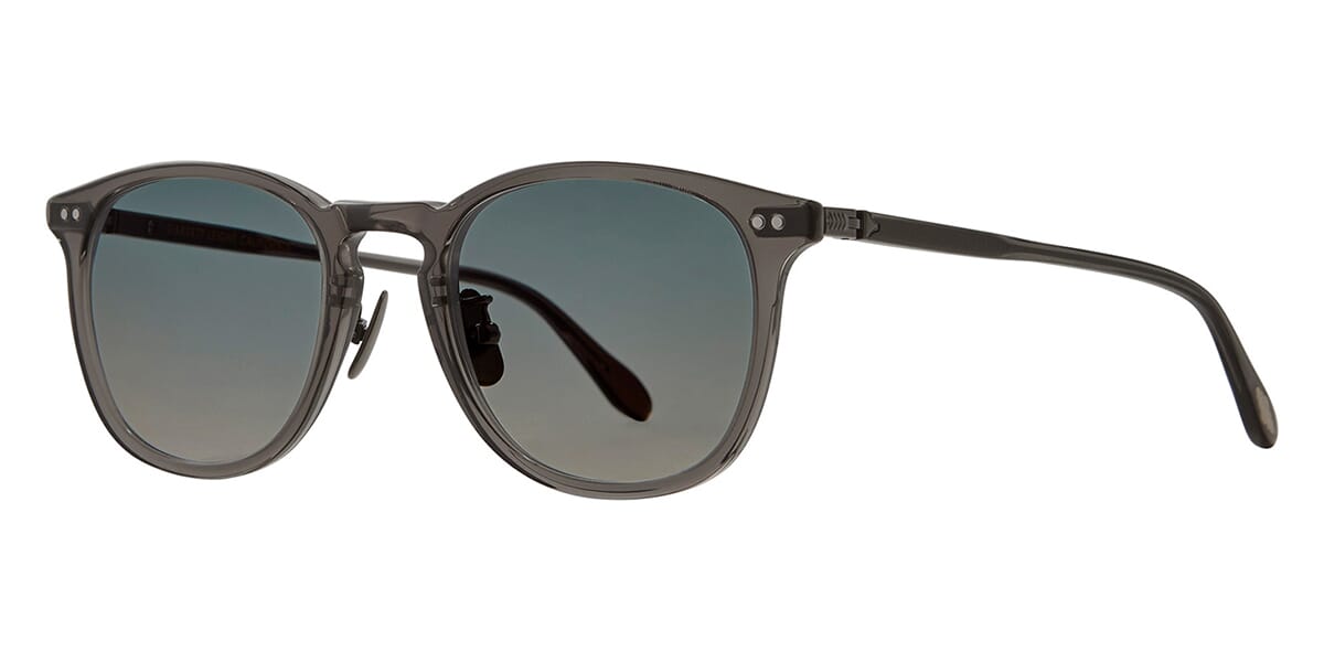 This square Garrett Leight sunglass comes in a eclipse dark crystal grey frame with twilight gradient lenses.
