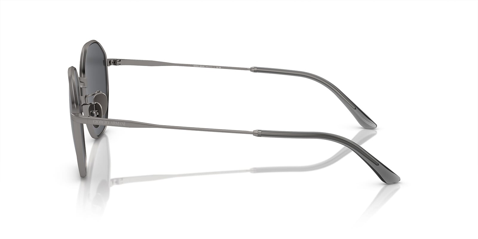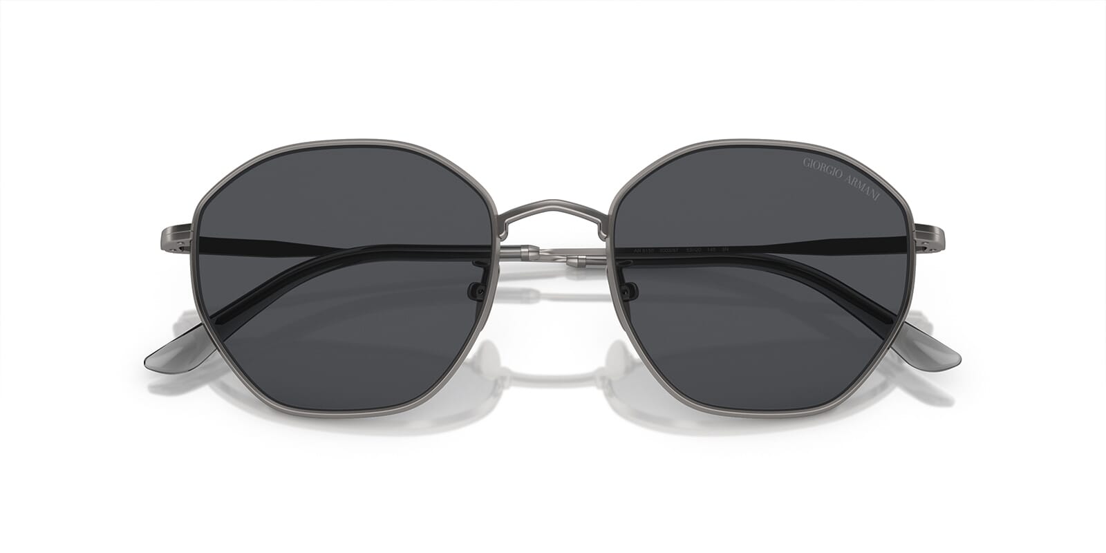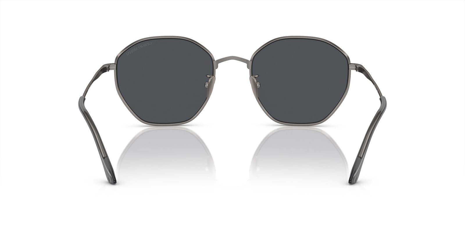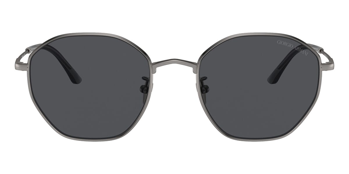 This square Giorgio Armani sunglass comes in a matte gunmetal frame with dark grey lenses.