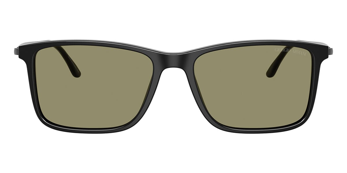 This rectangular Giorgio Armani sunglass comes in a black frame with green exclusive lenses.