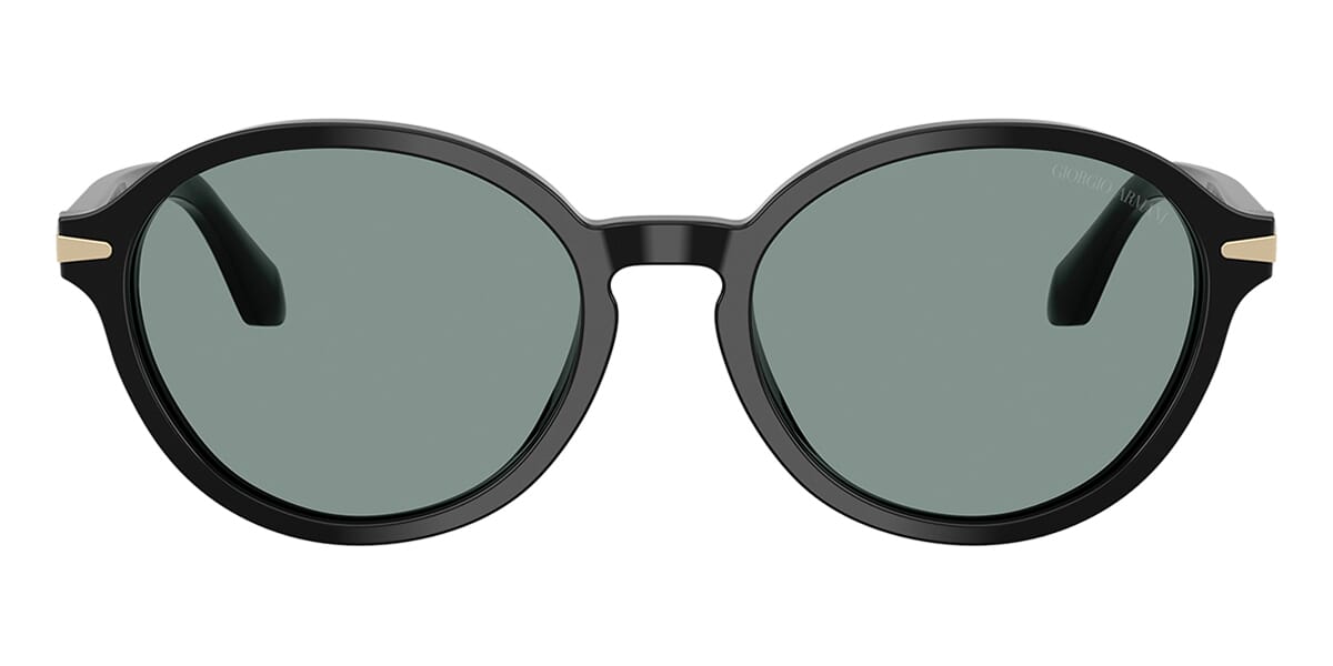 This round Giorgio Armani sunglass comes in a black frame with grey vintage blue lenses.