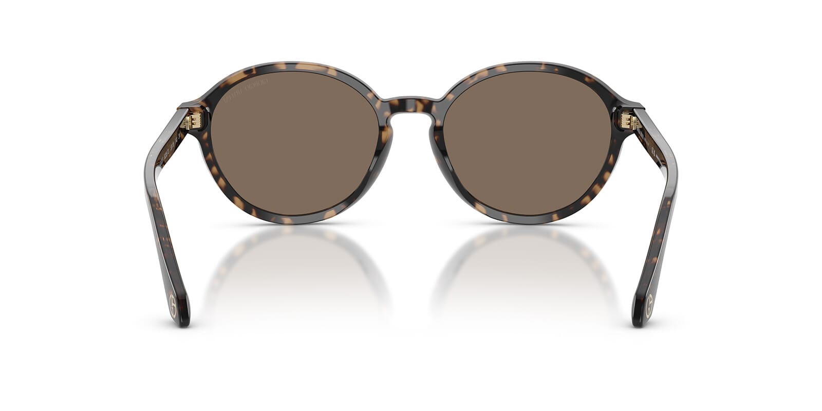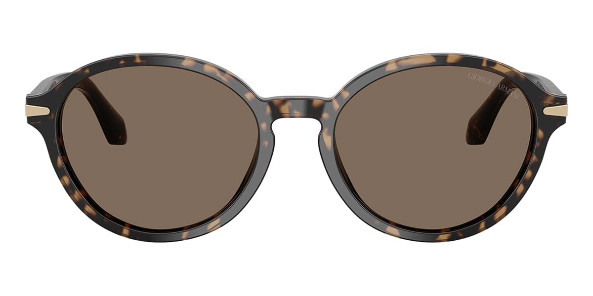 This round Giorgio Armani sunglass comes in a havana beige frame with brown lenses.
