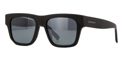 This square Givenchy sunglass comes in a shiny black frame with grey lenses.