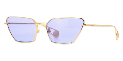 This cat eye Gucci sunglass comes in a gold frame with pink lenses.
