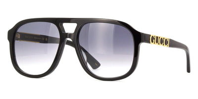 This aviator Gucci sunglass comes in a shiny black with gold frame with grey polarised lenses.