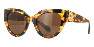 This cat eye Gucci sunglass comes in a shiny brown havana frame with green gradient with light mirror lenses.