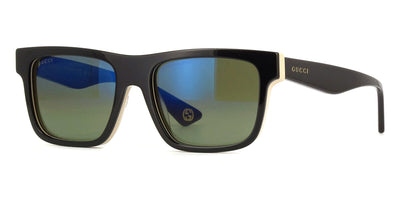 This square Gucci sunglass comes in a shiny dark havana frame with green with light mirror lenses.