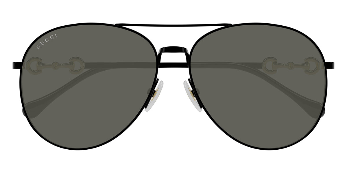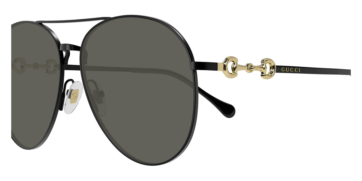 This aviator Gucci sunglass comes in a black frame with grey lenses.