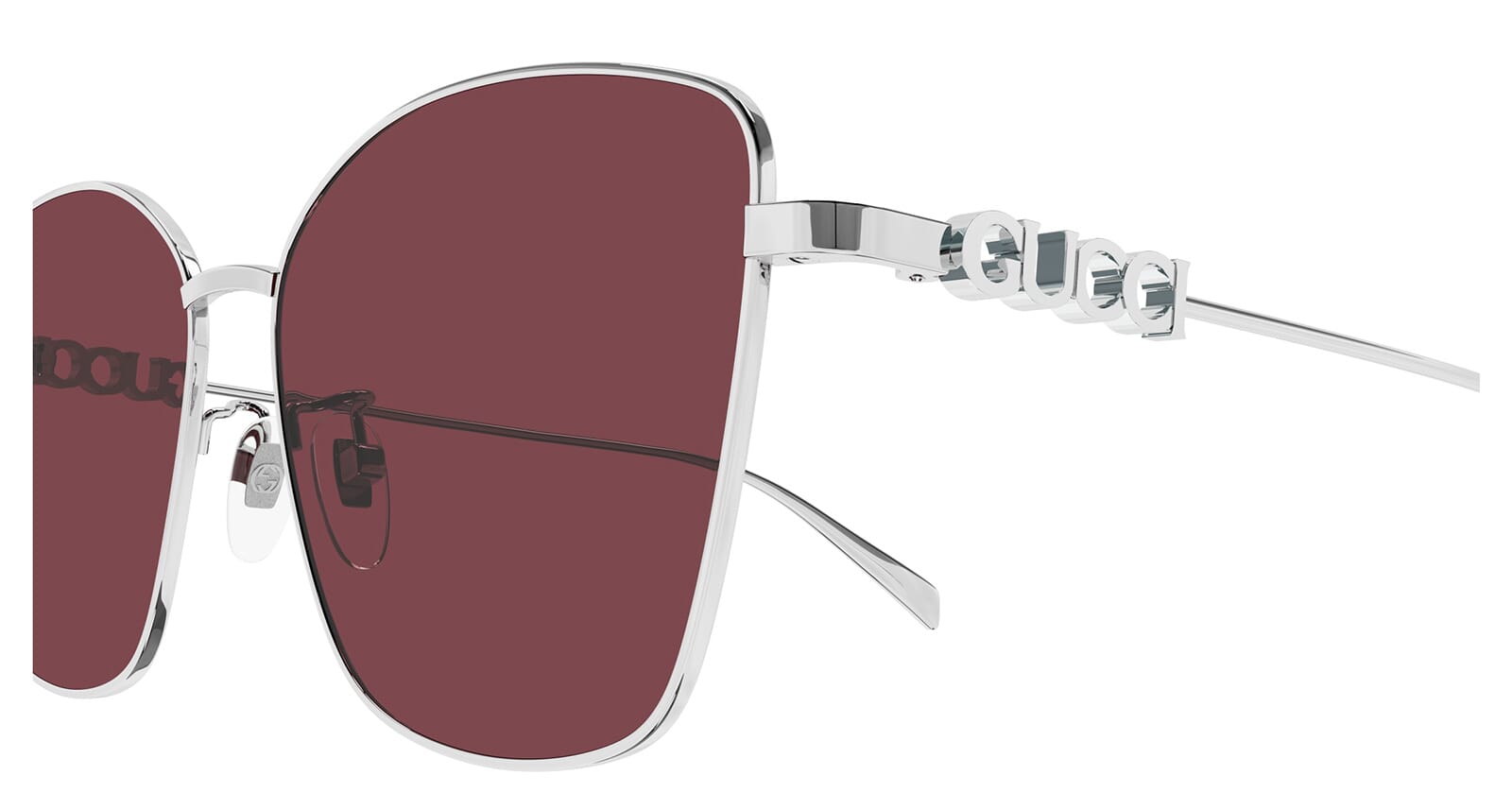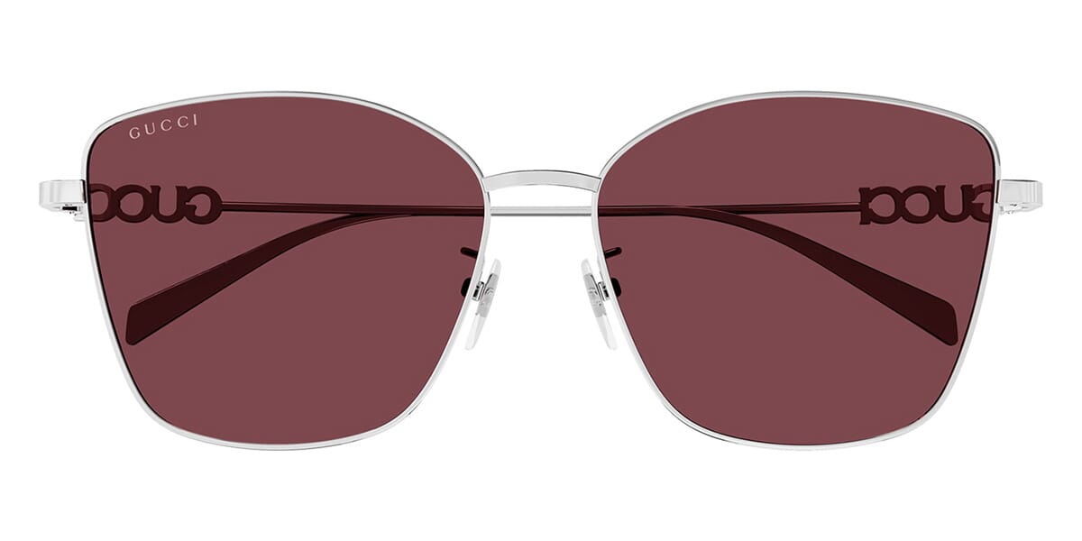 This butterfly Gucci sunglass comes in a silver frame with red lenses.