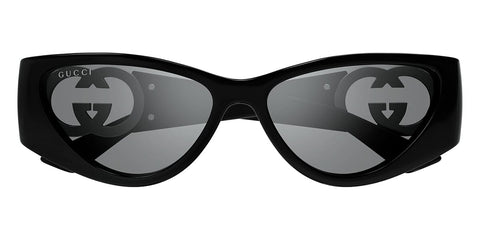 This cat eye Gucci sunglass comes in a shiny black frame with grey with light mirror lenses.