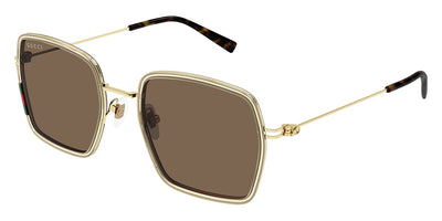 This square Gucci sunglass comes in a shiny blonde havana frame with brown lenses.