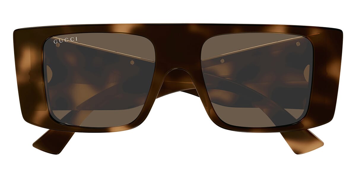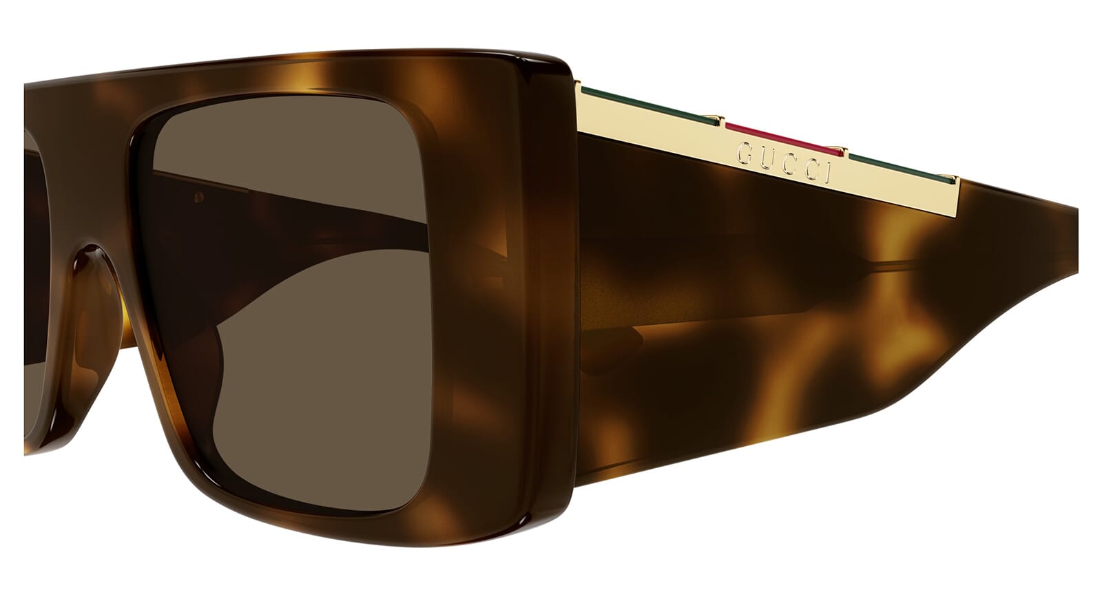 This square Gucci sunglass comes in a havana frame with brown lenses.