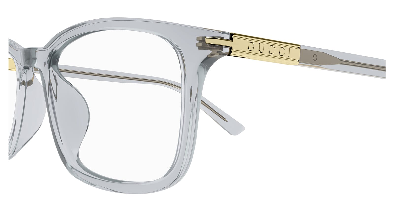 This square Gucci optical comes in a shiny crystal light grey frame.
