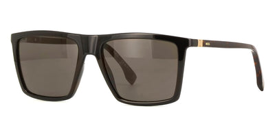 This square Hugo Boss sunglass comes in a shiny black frame with grey gradient with light mirror lenses.