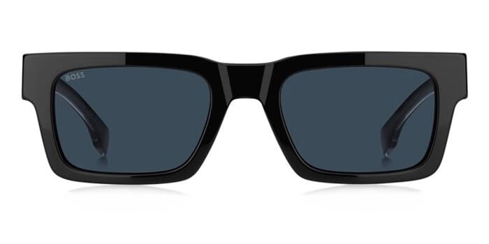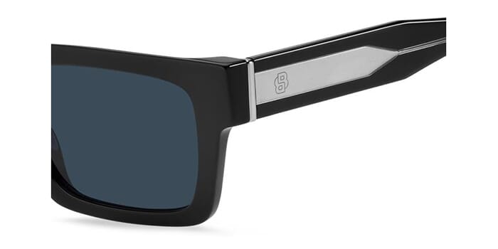 This square Hugo Boss sunglass comes in a shiny black frame with blue with light mirror lenses.