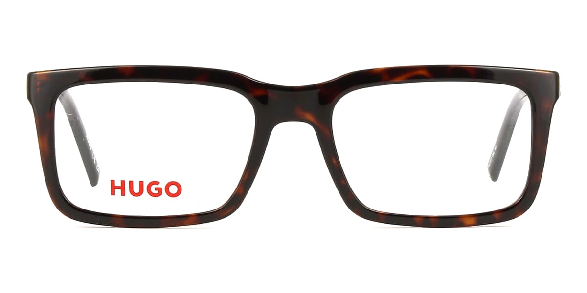 This square Hugo Boss optical comes in a shiny dark havana frame.