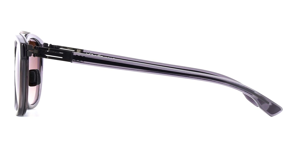 This square ic! berlin sunglass comes in a grey crystal frame with brown gradient lenses.