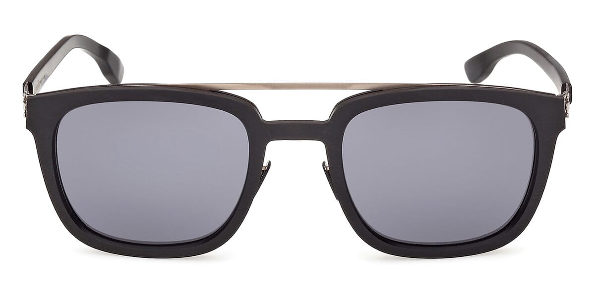 This square ic! berlin sunglass comes in a bronze rough black frame with smoke lenses.