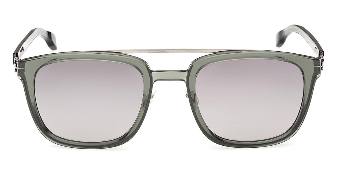 This square ic! berlin sunglass comes in a shiny graphite eucalyptus green frame with smoke gradient lenses.